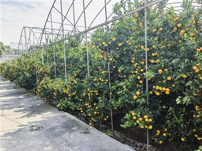 这样的大棚在临海、建德、象山以及三门多地推广应用,成为推动产业升级的重要支点,其中,三门县更是涌现了大棚种植规模近3000亩的“大棚柑橘第一村”。种植户通过连栋大棚、薄膜保暖、智能滴灌、水肥一体化以及生物防治等技术,有效缓解浙江冬季寒潮对柑橘品质的不利影响,并成功延长采收期,使柑橘热销至春节、元宵节乃至清明节,实现错峰上市,效益倍增。