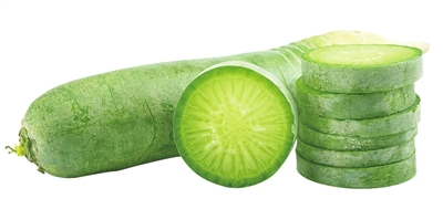 白萝卜,形体细长,外表嫩滑,甘脆多汁,润喉清嗓,清热生津,为十字花科植物莱菔的鲜根,含水量可高达94.6%,维生素C含量高达19.0毫克/100克,能提高人体免疫力,延缓衰老,阻止色斑的形成,保持皮肤水润白嫩。白萝卜还含有淀粉酶、氧化酶等,能促进食物中的淀粉、脂肪分解并吸收,有助于消化。白萝卜的芥子油能促进胃肠蠕动,既助消化又能开胃,还能加快淀粉和糖类的分解,减少体内脂肪的堆积。