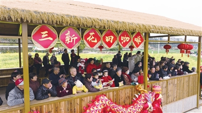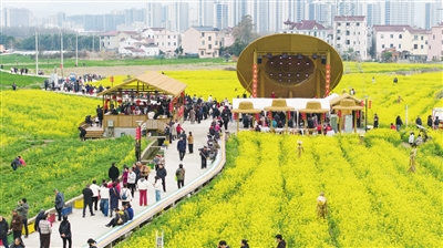 作为片区的“后花园”,这两天,三新村村口的200多亩七彩油菜花竞相绽放,吸引着大批游客打卡。“我们村主打农旅融合、生态田园,抱团发展后,真正实现了有景、有业、有人气。”三新村党总支书记、村委会主任齐菊女介绍,今年村里引进早花品种“迎春一号”,让油菜花期提前且长达3个月,其间依托新业态,村集体日均经营性收入超万元。此外,村里还流转近500亩闲置土地,建成共富工坊,2025年村集体经济收入突破百万元。