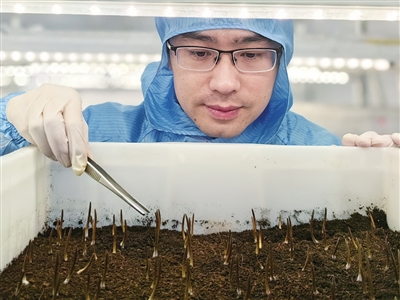 2016年,在经历上万次的参数调整、无数组的实验对比后,第一根人工培育的冬虫夏草终于长出。“看到它的那一刻,所有人都热泪盈眶,这么多年的付出终于看到了曙光!”施深海至今仍难掩激动,它打破了“低海拔地区无法培育冬虫夏草”的固有认知,证明了人工模拟高原生态的可行性,为冬虫夏草乃至类似高原野生药材人工培育和产业化发展带来了希望。