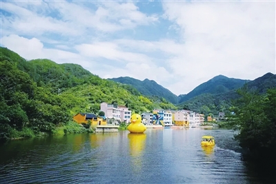 缙云县新西坑村的夜,被烟花点亮。云栖湖里,卡通游船慢悠悠地荡漾,岸上的人举着手机,追着流光溢彩的鱼灯队伍跑。有人说,这里像《大鱼海棠》的梦境。